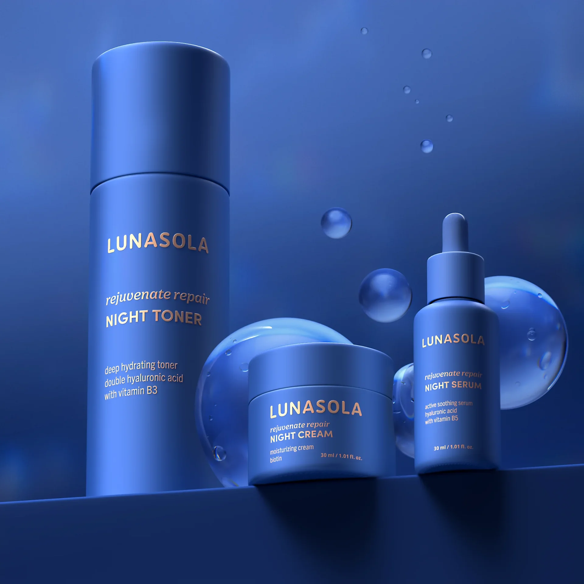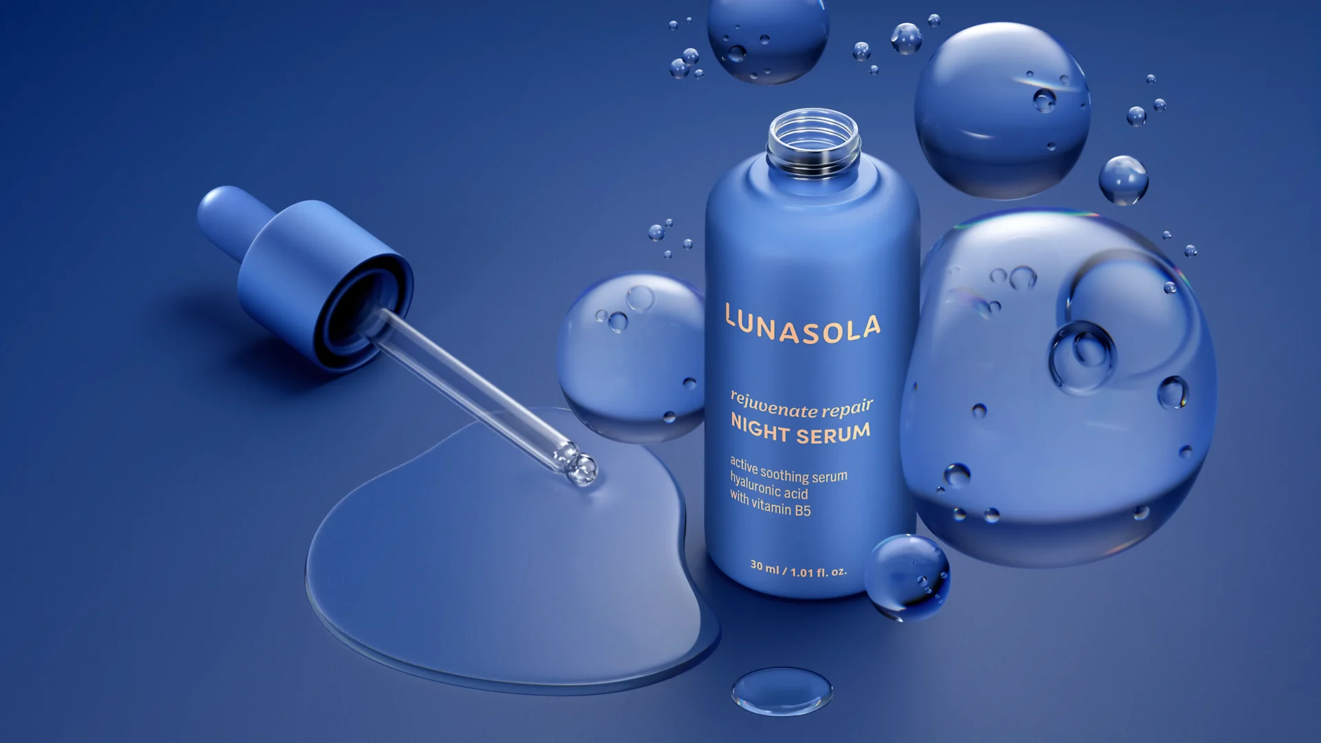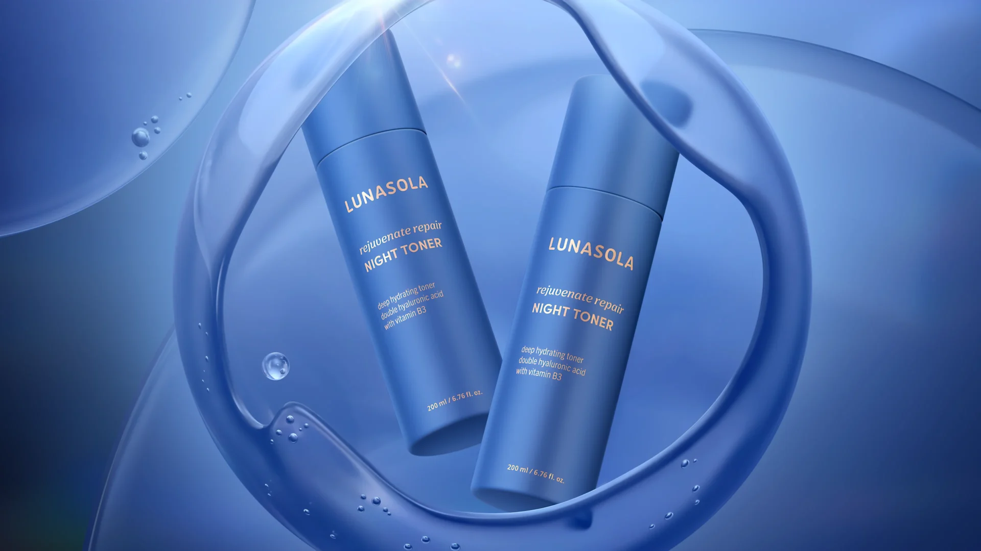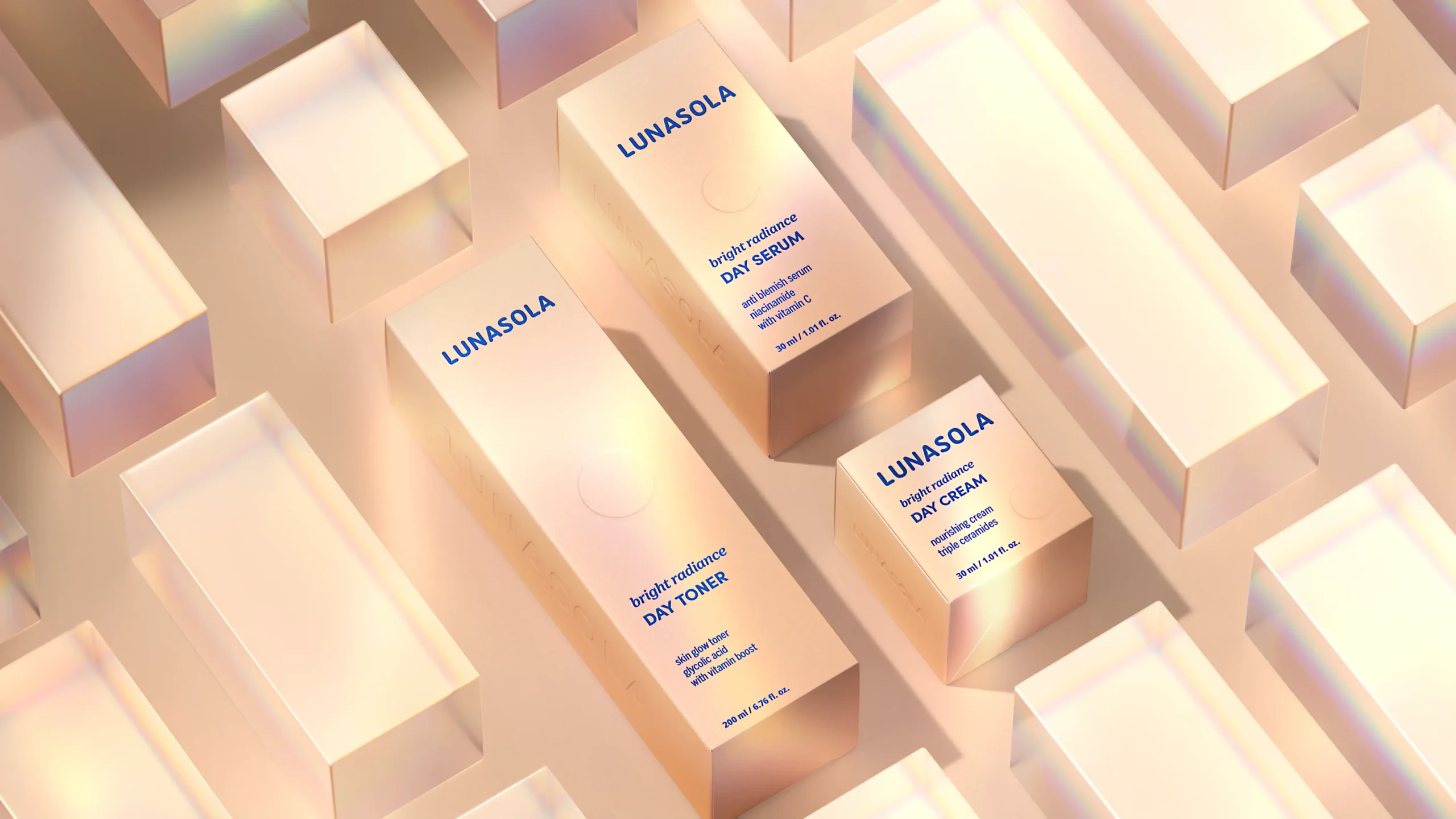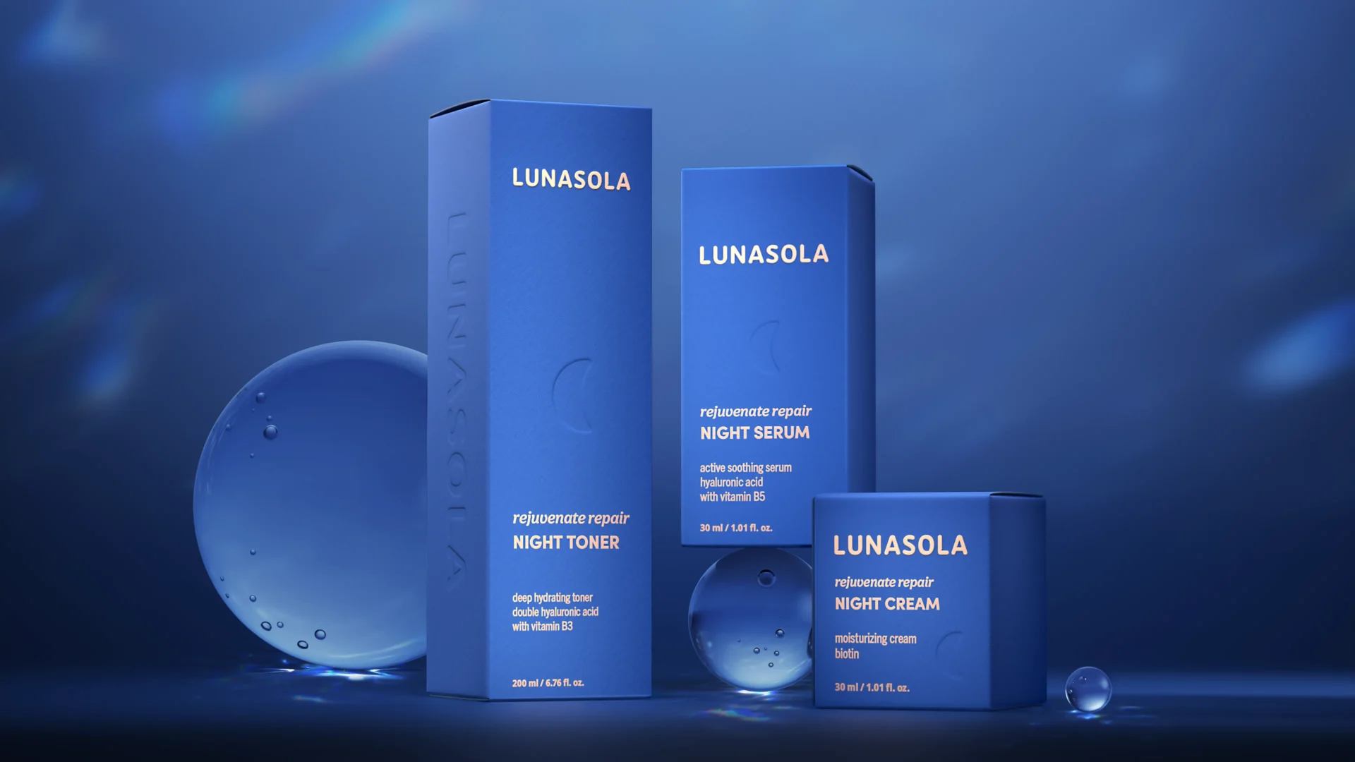 LUNASOLA is a conceptual skincare line designed around the duality of day and night skincare needs. The project centres on a two-serum system, one for day, one for night, addressing the cyclical rhythm of skin and providing a continuous care narrative across 24 hours.